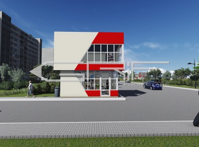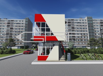 Construcția comercială este alcătuită din doua nivele cu dimensiunele in plan de 4x6m. Ea este o construcție provizorie din construcție metalică cu panouri sandwich. Accesul la etajul doi se infăptuiește cu ajutorul unei scări exterioare.